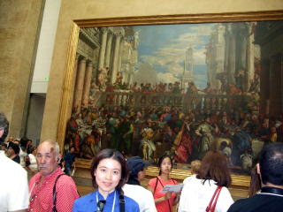 ヴェロネーゼ作「カナの婚宴」の前で。