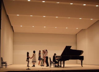 C級では、アゴーギクや、テンポ感を身体でつかんでもらうために、生徒の一人がワルツ・レントを弾き、他の子たちはステージに上がらせて皆で手をつないで、踊ってもらいました。