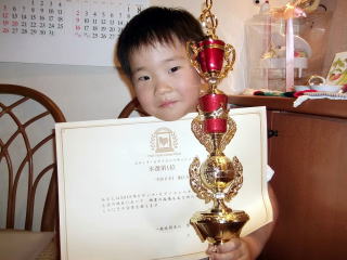 「ボクよりも大きなトロフィーもらったよ。