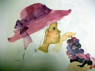 「ぶどうを持つ少女 1973年 いわさきちひろさんの絵」