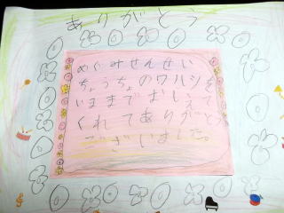ぼくにこたえましょう。「めぐみ先生は、むかし、なにをしていましたか?」私は、「ピアノを弾いていたよ」