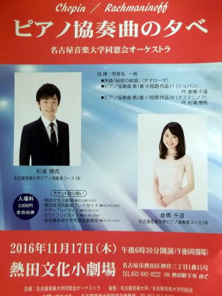 チラシが出来次第、アップします。学生時代に、コンチェルトをさせて頂ける機会なんてそうあるものではありませんから、生徒と共に、感謝しています。