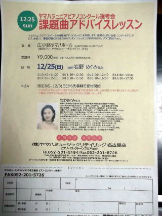 来月の12月25日(日)名古屋・広小路ヤマハホールでヤマハジュニアピアノコンクール選考会
