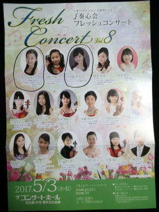 5月3日(水・祝)名古屋・伏見電気文化会館ザ・コンサートホール(午後15時開演)で、奏心会フレッシュコンサートがあります。