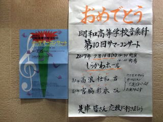 平成29年7月6日(木)生徒さん達のコンサートのお知らせ