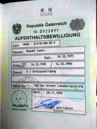 ←ウィーン時代の私のビザ。(査証)。(滞在許可証)