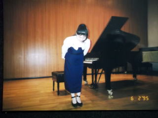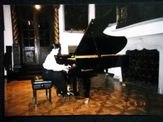 左の写真は、初めてここで、クラッセンアーベント(門下生のコンサート)に出演した時の私。この時は、ドビュッシ―の映像2集を演奏。