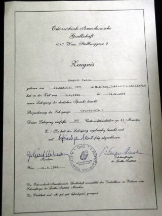 私は、現地では、エステライヒッシュ アメリカーニッシェ ゲゼルシャフト(オーストリア/アメリカ協会)のドイツ語学校に、約5ヶ月通いました。ウィーン大学の中でやっている語学学校にも3か月ほど通いましたが、ここは、レッスン料が安い分、人数が多すぎて、あまり、ためにならないと判断して、すぐやめました。