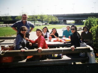 ↓ウイーンでのドイツ語学学校での様子。ドナウインゼルのほとりで。パンとかチーズとか、サラミとか果物など、先生が買って来て下さり、皆で楽しくピクニックもあります。