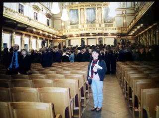 ←ウィーンフィルの本拠地、楽友協会ホールで。日本のお正月にもここから、毎年生中継で、ウィーンフィルニューイヤーコンサートが放映されているので、皆さん、おなじみの場所です。