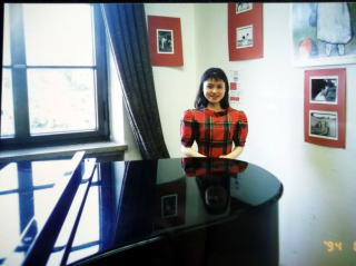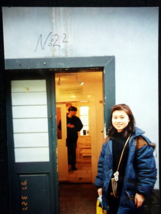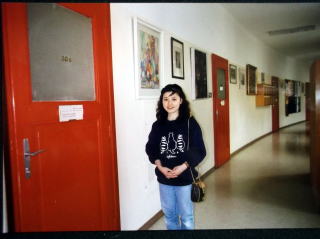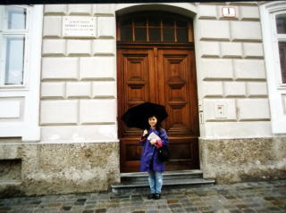 ←ウィーン国立音大のピアノ科のレッスン室の前で、23歳の私。私の師匠、ローラント・ケラー教授のお部屋は、206号室でした。