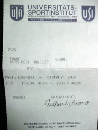 ←ウィーン大学のバレエの授業の証明書。スポーツインスティテュートといって、他にも色んなスポーツをやっています。