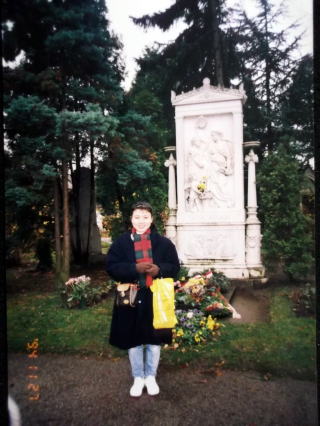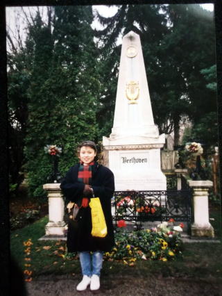 ←ウィーン中央墓地にある、シューベルトのお墓の前で。ベートーヴェンの隣で眠っています。シューベルトは、生粋のウィーンの人でしたので、ウィーンの人達からは、特に愛されている作曲家です。
