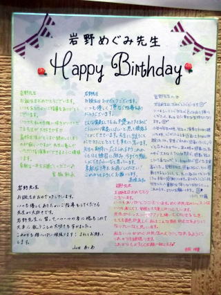 ←今日は、明和高校の子達のレッスンで、明日の私の誕生日をお祝いしてくれました!暖かい心のこもったメッセージがとても嬉しかったです!