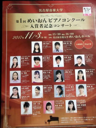 11月3日(金・祝)16時開演、名古屋音楽大学めいおんホールで、第1回めいおんピアノコンクール入賞者記念コンサートがあります。