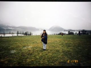 ←23歳の真冬に初めて訪れたザルツブルグ、私の後ろにある黄色い建物がモーツァルトが生まれた家。ザルツブルグは、大好きで、度々訪れましたけど、いつも大体、天気が悪く、雨。天気がいい時は、滅多にない感じですが、たまに晴れると素晴らしく美しい街です。