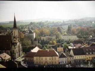 ←メルク修道院のテラスから見た眺め。秋の紅葉が美しい季節でした。