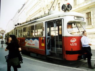 ←ウィーンのムジークフェライン(楽友協会ホール)前の停留所で。
