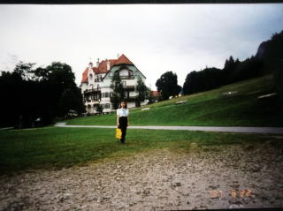 ←ドイツ、フュッセン、ホーエンシュヴァンガウで。ここから、てくてく歩いて、馬車に乗るとノイシュバンシュタイン城です。