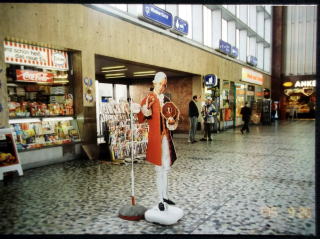 ←ウィーン、ズュートバーンホーフ(ウィーン南駅)。モーツァルトさんが、「ボクのお菓子はいかが?」