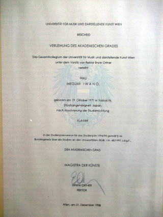 私達の時代で、「芸術修士号」は、ウィーン国立音大で、取得できる最高学位でした。