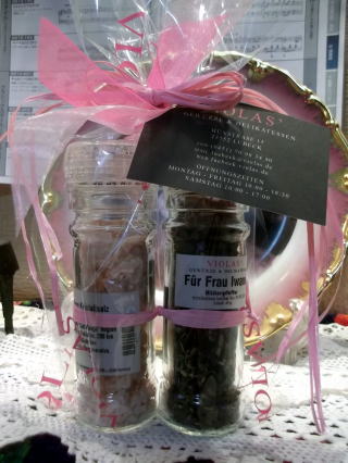 リューベックのハーブのお店で、お塩とお花の胡椒を、お土産に買ったので、どうぞ、と下さいました。