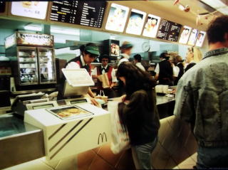 ←ウィーン国立音大のすぐ近くにあるマクドナルドで。ポルトモネー(財布)からクラインゲルト(小銭)を取り出している私。