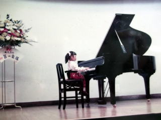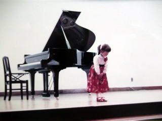 ←初めての発表会で、満5歳1ヶ月の私。ベートーヴェンの「トルコ行進曲」(小川一朗編)を演奏。今の子達と違い、補助ペダルも何もなく、足は、宙ぶらりん。