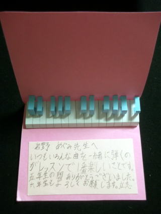 ←小学6年生の男の子から。ピアノの鍵盤、自分で一生懸命作ってくれたそうです。手先が器用なんですね!