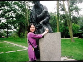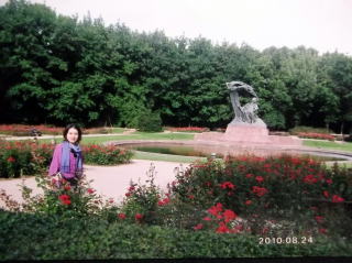 ←ジェラゾヴァ・ヴォラのショパンの生まれた家のお庭にある、ショパンの銅像。