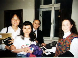 ←1996年5月12日マウリツィオ・ポリーニのリサイタルで。ウィーン、ムジークフェライン(楽友協会ホールの楽屋で)日本だと、楽屋は、関係者以外立ち入り禁止とかで、ものものしいけど、あちらは、気軽に楽屋に行って、演奏者とお話ししたり、楽譜を持ってきて、ここは、どう弾くのか?と聞いたり出来て、なんか全然、敷居が高くない気軽な感じです。