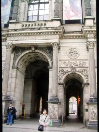 ←ドイツ・ドレスデンの聖フラウエン教会。宗教改革で有名なマルティン・ルターの銅像の前で。(写真は、2011年12月)
