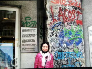 ←ドイツ、ベルリンにある、「ベルリンの壁博物館」の入り口に、落書きだらけのベルリンの壁が、残っています。