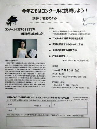 対象は、ピアノの先生方ですが、お母様方でもご希望の方は、どなたでもお入り頂けるそうです。「お悩みコーナー」準備の関係上6月30日までにお申し込みください、との事です。