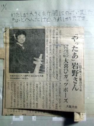 平成30年5月30日(水)ピアノと共に歩んだ道のり・・・小学5年生当時の日記から 毎日新聞掲載「やったあ」岩野さん 学生音コンピアノ1位 大喜びガッツポーズ