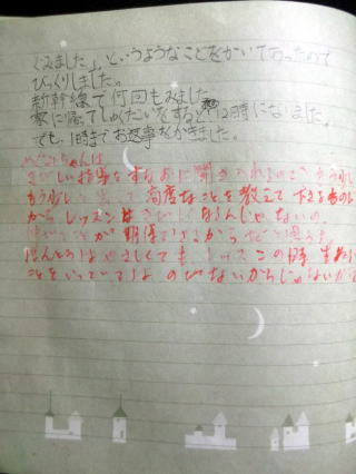 おととい東京にレッスンに行ったとき、先生から、お返事をいただきました。とびあがるほど、うれしくなりました。