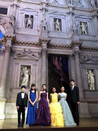 昨日、イタリアの世界遺産テアトロオリンピコで、演奏した6名の生徒さん達です。