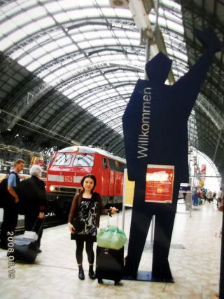 ←ドイツ・フランクフルト駅。「ヴィルコンメン(ようこそ!」(写真は、上下共に2008年。)