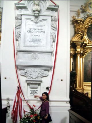 ←ポーランド、ワルシャワにある、聖十字架教会で。ショパンの心臓だけがここの中に納められています。(写真は、
