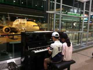 帰りのパリの空港にピアノが置いてあったそうです。2人で仲良く連弾かな?可愛い!