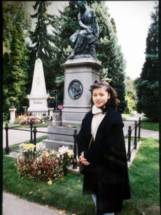 ←ウィーン中央墓地。モーツァルトの記念碑の前で。左奥が、ベートーヴェン、ここには写っていませんが、右にシューベルトのお墓があります。