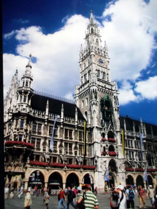 ←ドイツ、ミュンヘンのマリエンプラッツ(マリエン広場)にある、ラートハウス(新市庁舎)。ミュンヘンに来た人なら、必ず、通る場所です。(2008年8月撮影)