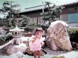 ←三重の自宅のお庭で、シャボン玉をして遊ぶ、4歳の私。