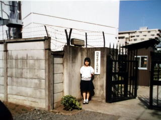 ←当時の桐朋学園大学の調布寮の前で。上下共に、桐朋女子高校1年生の私。