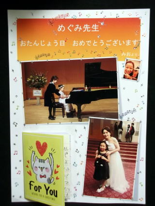 今日は、私の誕生日でした。今年は、リサイタルもあったので、生徒さん達からのお手紙や、カードなどで、レッスン室の前が、一段と華やいでいます。皆さん、本当に有難うございました。