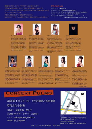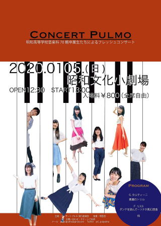 来年2020年1月5日(日)昭和文化小劇場(開場12:30開演13:00)で、明和高校音楽科を同期で卒業された方達のコンサートがあります。
