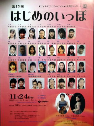 チラシもそろそろ、皆様にお配り出来ると思います。演奏の方も、ほとんどの生徒さん達は、もう暗譜もして、これから、音楽の世界へ羽ばたいていけるよう、スタートラインに立っている状態です。あと3ヶ月ほどで、更にじっくり仕込んで、曲を熟成させていきましょう。