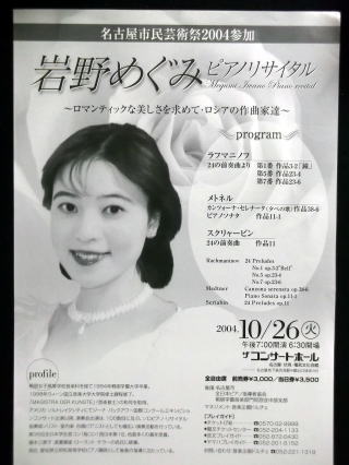 ←33歳当時の私のピアノリサイタルのチラシ。(2004年10月26日(火)名古屋伏見電気文化会館ザ・コンサートホール。)
