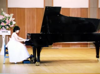 ←初めての門下生コンサートで、演奏する小学2年生の恵利那さん。グルリットの「春のおとずれ」