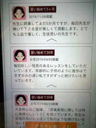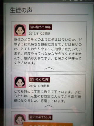令和元年11月22日(金)ピティナの教室紹介をクリックすると、生徒の皆さんのお声が掲載されるようになります!